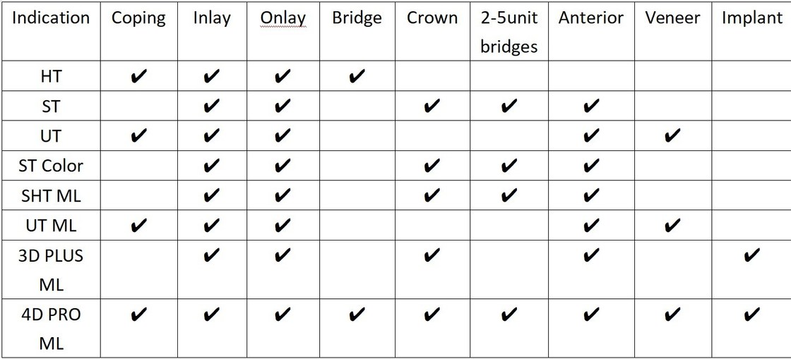 This type of multilayer zirconia block can make both posterior teeth and anterior teeth. One zirconia block to cover all indications.