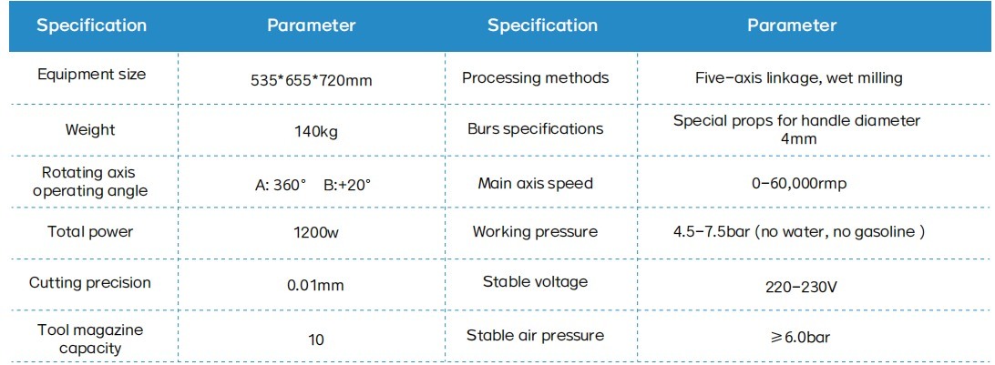 다양한 모델과 재료 유형을 수용할 수 있는 치과용 습식 밀링 머신,최대 8개의 재료를 배치할 수 있습니다.